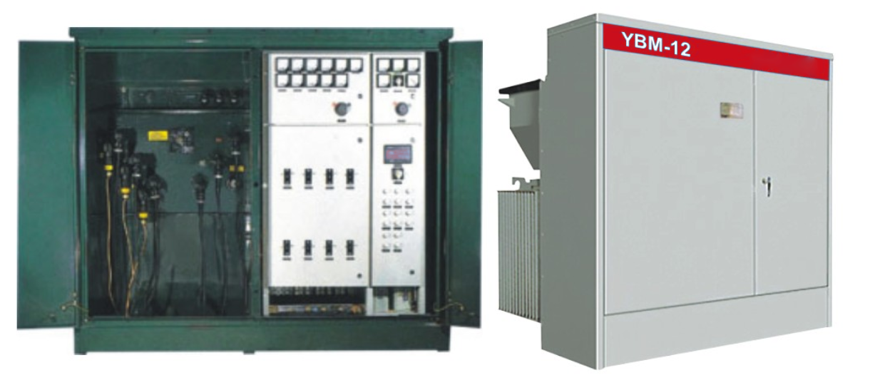 YBM系列预装式变电站(美式箱变)也称组合式变压器,俗称美式箱变,是消化吸收国外的设计理念,结合我国城乡配电网要求而设计开发的新型产品。由于采用特殊设计的10KV负荷转换开关、插入式熔断器、后备保护熔断器和高压肘型电缆插头,从而极大地简化了装置结构,使整套箱变体积很小,能够满足终端及环网各种供电方式的需要。采用双熔断器保护,其熔丝具有电流、温度双敏特性,从而使保护灵敏性和可靠性都大大提高。该产品既可用于户外也可用于户内,广泛适用于公寓楼、花园、别墅、办公楼、居民住宅、工矿企业、商业中心、城市小区等场所。