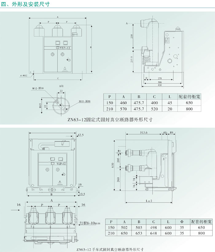 该产品可安装于KYN28、KYN96型开关柜或配套于其它铠装中置柜:可提供额定电流为630A1600A、固定封极柱真空断路器,可安装于650mm、800mm、柜宽的开关柜;