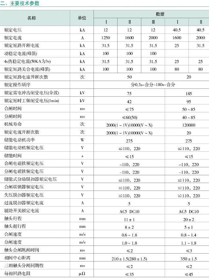 ZNl2-40.5型户内高压真空断路器能与KYN-40.5、KYNl-35、GBC-35型等系列开关柜配套的主开关。断路器安装于开关柜内的手车上,作为可移动单元。同时断路器也可装于XGN-40.5开关柜内进行固定安装。本断路器机构与开关一体:专用的弹簧储能式操动机构,可以用交流直流储能操作,也可用手动操作。