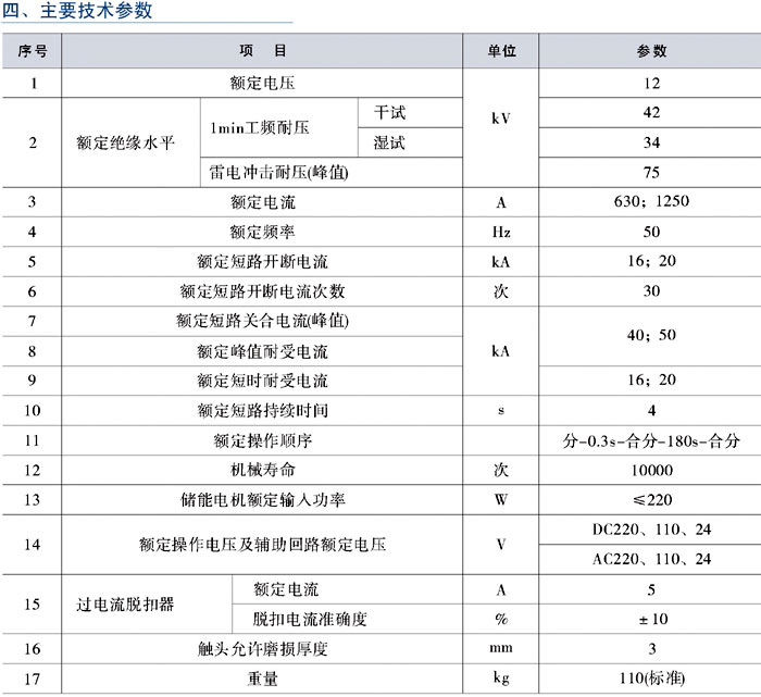 2、额定操作电压及储能电动机额定电压;