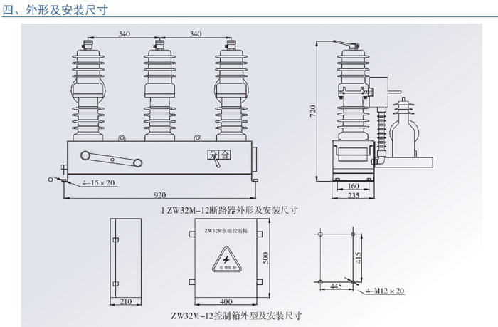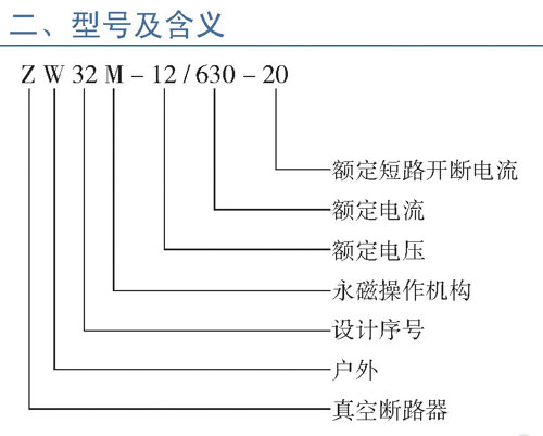 ZW32M-12型户外高压永磁真空断路器(以下简称断路器)为额定电压12kV,三相交流50Hz的户外配电设备。主要用于开断、关合电力系统中的负荷电流、过载电流及短路电流。适用于变电站及工矿企业配电系统中作保护和控制之用,及农村电网频繁操作的场所。