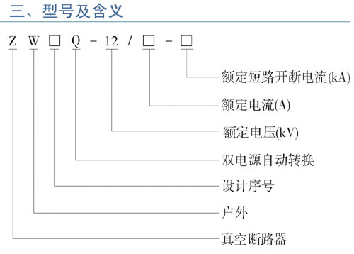 ZW□Q—12系列户外双电源自动转换真空断路器在常用电源发生故障时,切换装置可以完成与设备电源的自动切换,保证可靠性和安全性。也可根据负载的需要进行两路电源之间的选择、切换,产品具有过载、短路保护功能且进行了互锁设计。特别适用于不允许断电的重要场所,作为保证连续供电的重要电气控制装置,是与高压真空断路器配套的自投自复型双路电源自动切换装置。为新一代设计新颖、性能完善、安全可靠、自动化程度高、使用范围广的双路电源自动切换产品。
