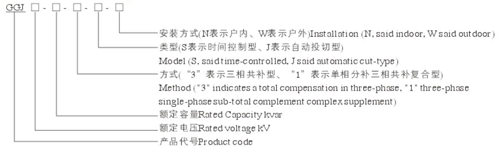 The GGJ series low-voltage split-phase reactive power compensation complete device is designed and manufactured in accordance with the machinery industry standard \"Low-voltage parallel capacitor device\" (JB7113-93).